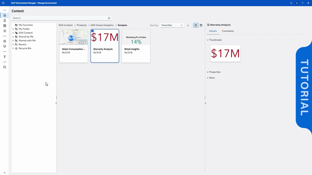 This Quick Start tutorial demonstrates the features of SAS Environment Manager, which enables individual users to manage their personal SAS assets. Administrators can use it to customize and monitor the SAS Viya environment for all users.